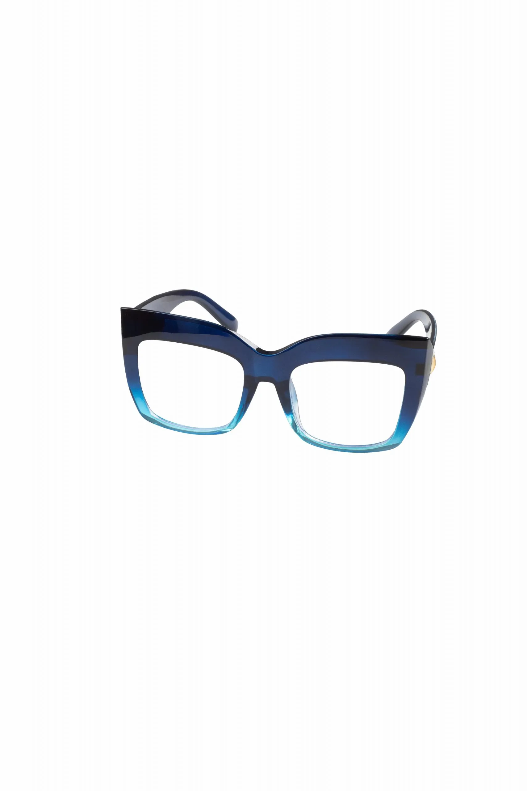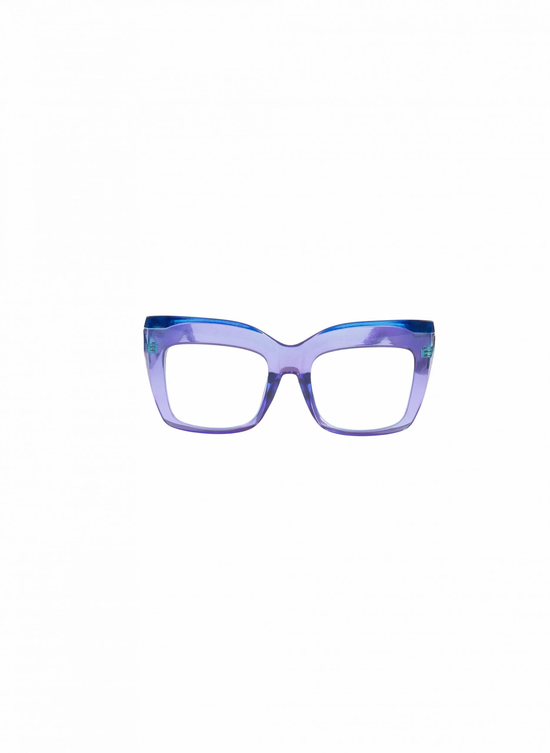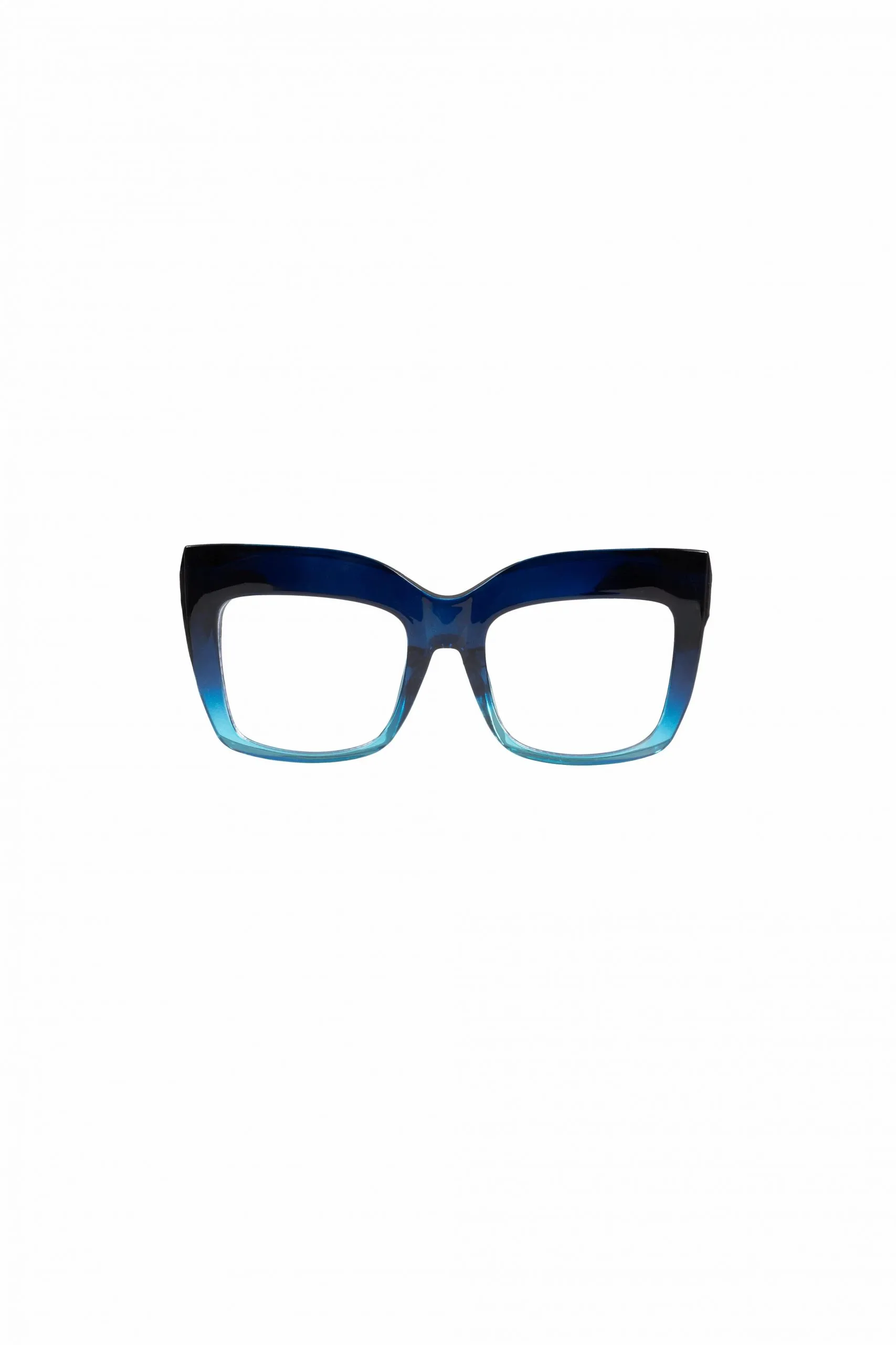 Las Velvet Lens irradian un encanto único con su montura cuadrada gruesa que se desvanece de un azul profundo a un celeste vibrante. Un diseño femenino y audaz que captura la luz y la atención, realzado por lentes claras para una mirada fresca y moderna.